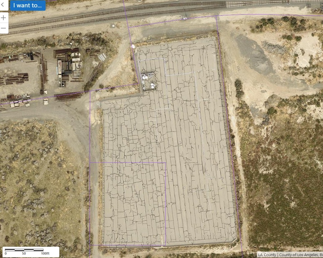 2014 - Closer view of asphalt cap (photo from LA County Assessor's website - purple lines are assessor id boundary lines).