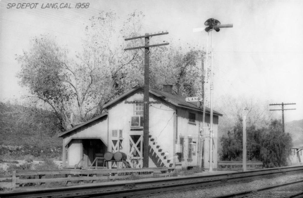 "Lang Station was built at a later date [than 1876], but judging from its present condition probably not much later. A small building, it appears to be occupied as living quarters and while a bit wobbly and in need of basic repair, it is still standing. One might hope that if and when it falls over it will be in the opposite direction from the main tracks it faces to avert an even greater tragedy. Of all the railroad stations left standing in the state, this one is probably most worth saving for its historical value. So far as can be determined, no such action is envisaged. Unless interested historical-minded groups do something soon at the Lang Southern Pacific Station it looks like it will be auld lang syne..."