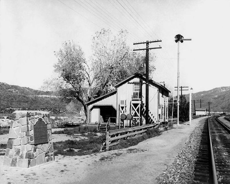 On September 5, 1876, Charles Crocker President, Southern Pacific Railroad, drove a gold spike here to complete his company's San Joaquin Valley line, first rail connection of Los Angeles with San Francisco and Transcontinental Lines.