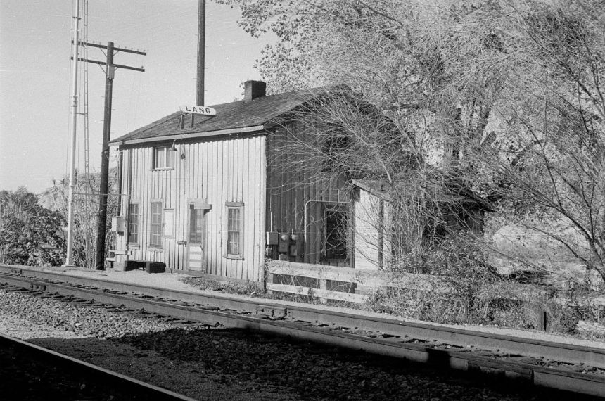 1968. Lang Station, Lee Gustafson Collection, MS 755, California State Railroad Museum Library & Archives, Sacramento, California..