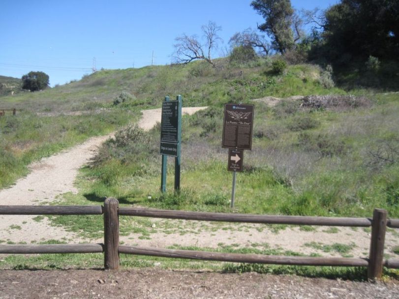 If you ever hike Elsmere Canyon take the left fork and continue up to the so-called "La Puerta" site, which is at another fork in the creek bed. It can't be missed, although it may be difficult to get to. At the false La Puerta site, if you go up the left fork you will eventually run into a 50-foot water. If you go up the right fork, you will be stopped by smaller waterfalls that are nearly impossible to get over. Why would anybody need to stop cattle from going up two forks to nowhere except higher ground? Neither lead to the San Fernando Valley or the Santa Clarita Valley.