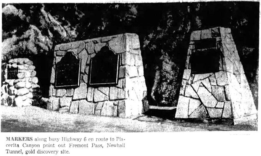 The monument on the right had a Newhall tunnel plaque. The exact date when that monument was constructed is unknown, but it was between 1949 and 1953. All the plaques were stolen many years ago.