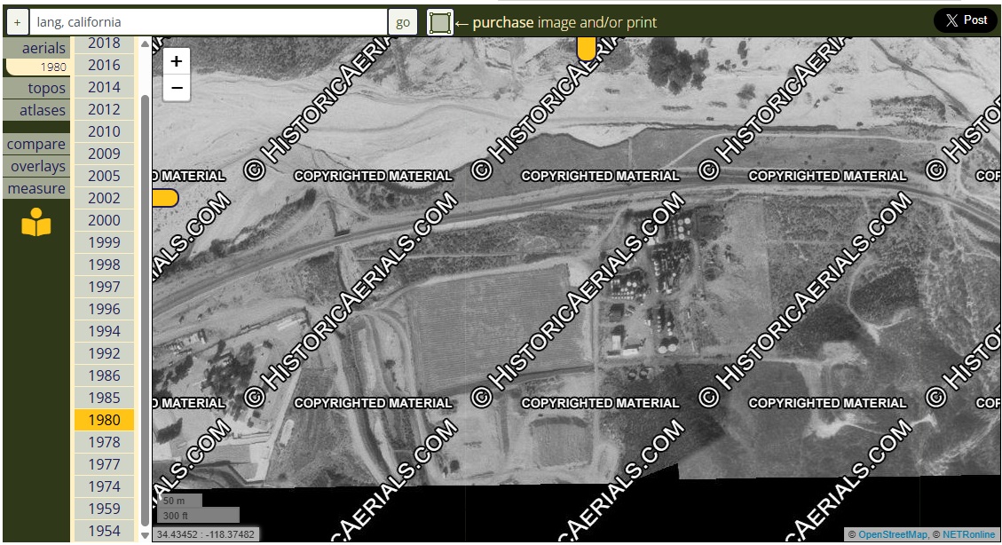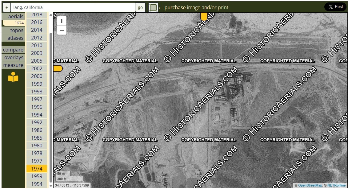Aerial Views (early ones from HistoricalAerials website) of Lang Station refinery, 1954-2025