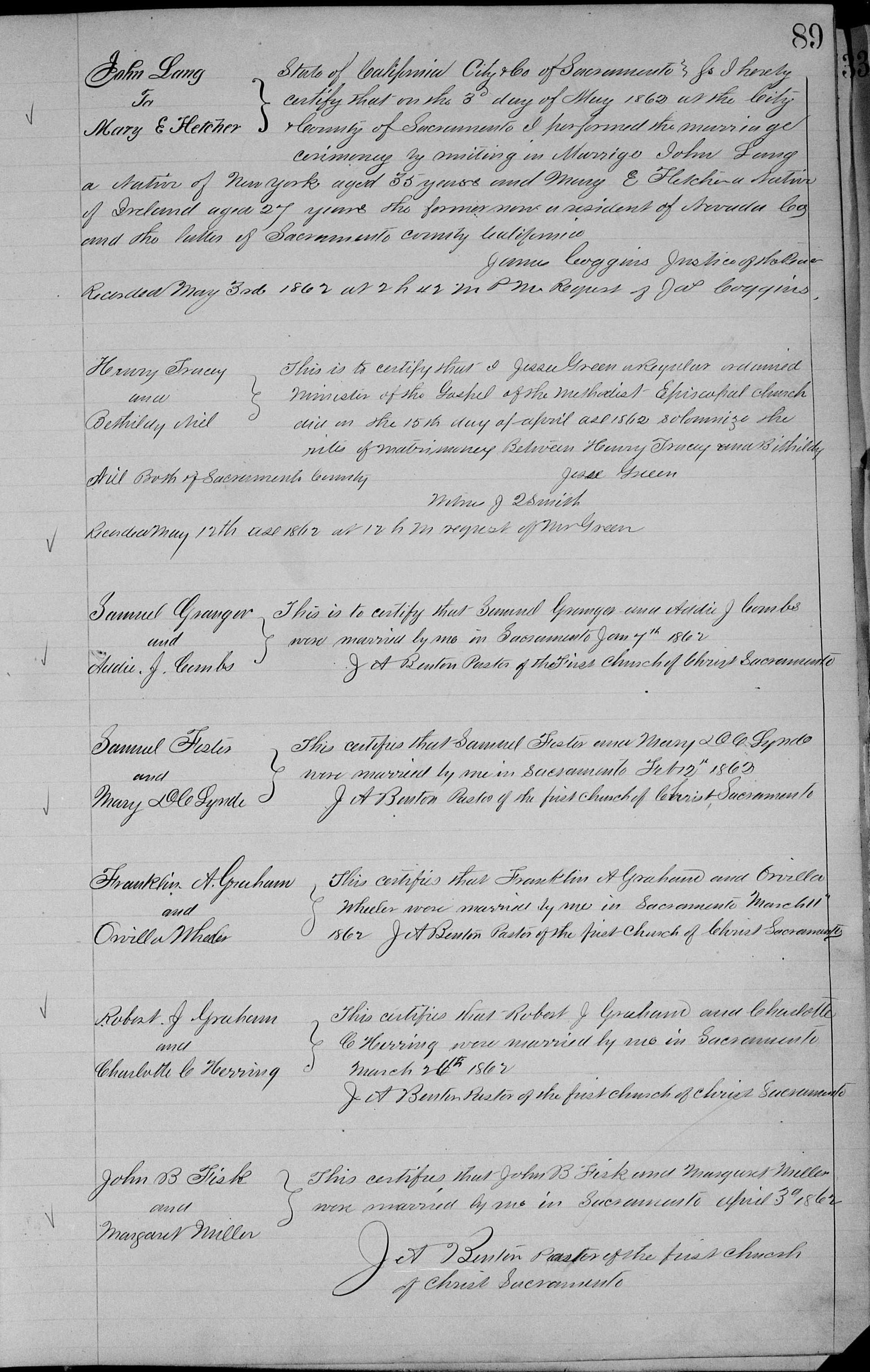 "Uncle John Lang is doing a rushing real estate business at 115 West First street. To show how great the demand is for bargains in real estate, the fact may be mentioned that a single piece of property advertised on the sixth page of the Herald brought twenty customers to Mr. Lang's office. There is a general agreement in the opinion that real estate is on the upgrade, and now is the time to invest."Once John Lang was gone, news from Lang's Station was sparse. His son John B. Lang, had not moved away with his father, like the rest of the family, but stayed on his own ranch on his 166 acre homestead[56]. He would receive a patent for it in 1898. The postmaster at Lang's Station at that time (1890-91) was Cassius H. Clayton. He leased the Lang orchard from Steele and was doing well with the fruits and bees.[57] He was also homesteading 166 acres near Lang's Station which he patented in January of 1896. The April, 1897, Pacific Bee Journal[58] reported that a law on bee adulteration (the intentional misrepresentation of honey and beeswax for profit, most commonly by diluting honey with cheaper sweeteners like corn, rice, or cane sugar syrup):