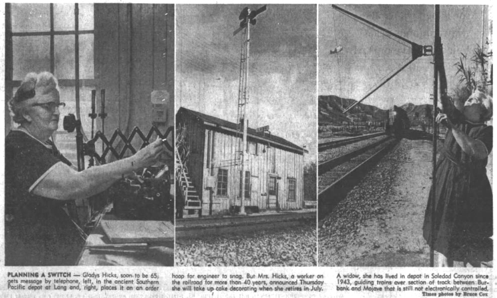 "The Lang operator returns from hanging out train orders for the mid-day westbound freight. Photo taken May 20, 1967." Van W. Best photo from Railroading through the Antelope Valley, Phil Serpico, Omni Publications, Palmdale, Ca., 2000, p. 92. This is an excellant book to check out..