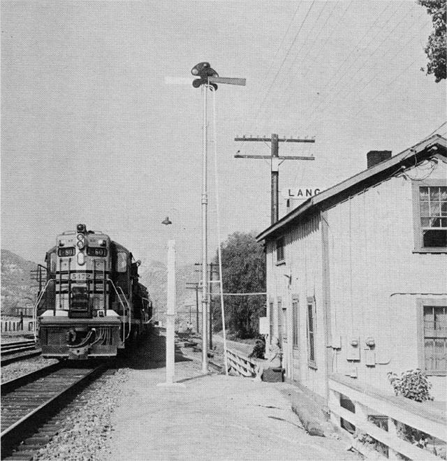 1968. Lang Station, Lee Gustafson Collection, MS 755, California State Railroad Museum Library & Archives, Sacramento, California..