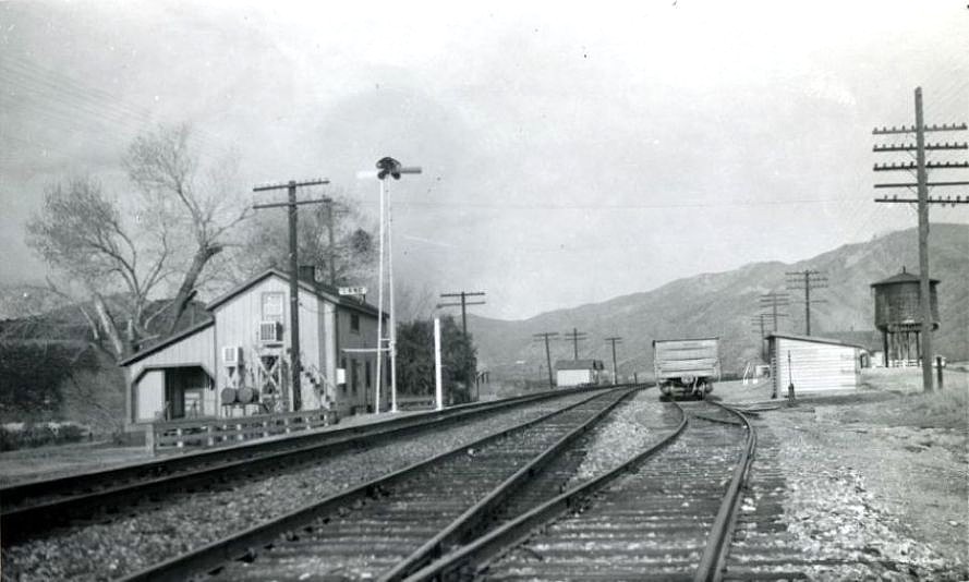 View of the rear and south side of the station. Photo taken by Mel Johnson in the 1960s. Santa Clarita Valley Historical Society, Mel Johnson Collection. Used with permission..