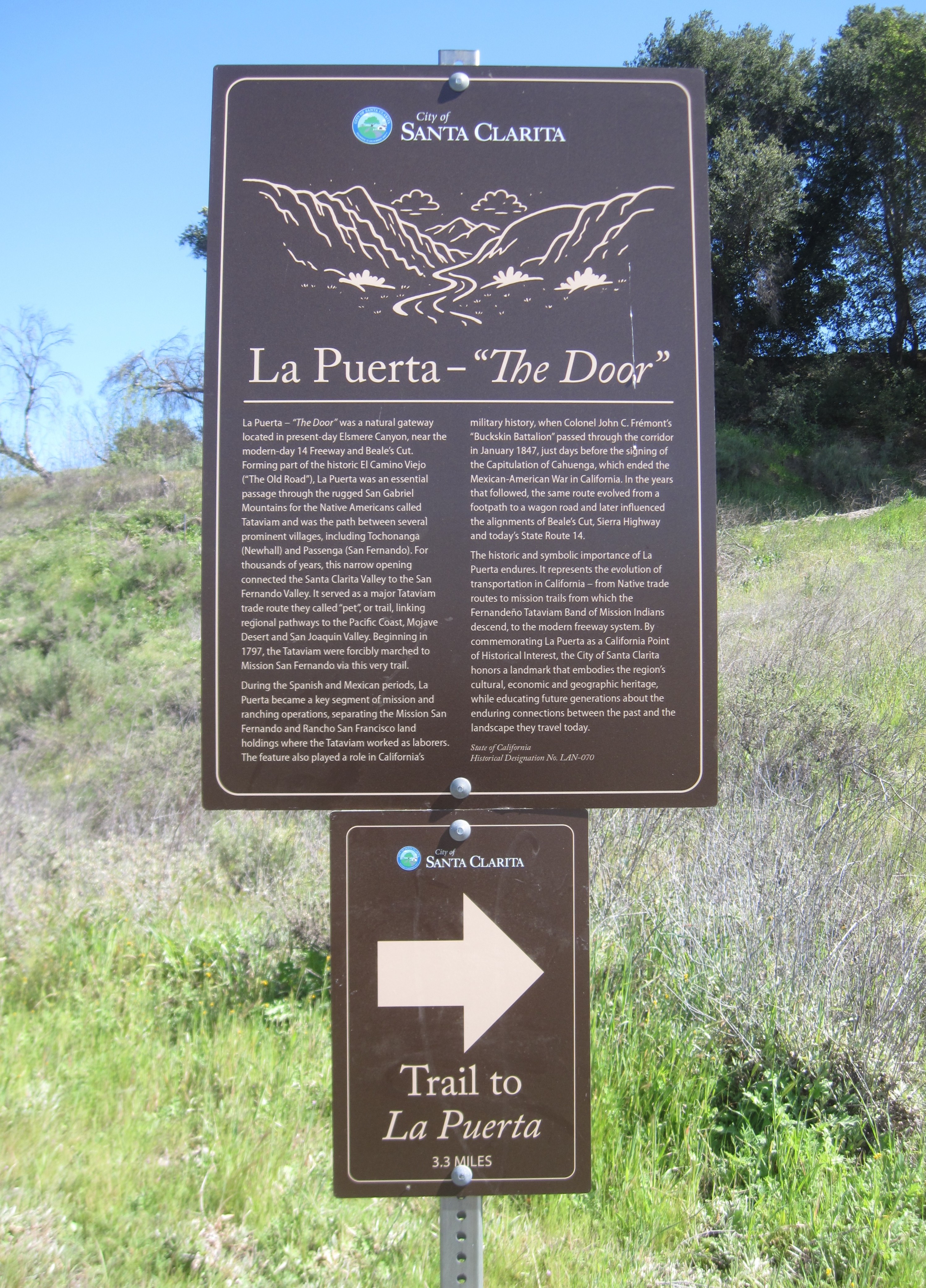 On March 3, 2026, the City of Santa Clarita celebrated the designation of "La Puerta" as one of California's points of interest. A new sign was dedicated at the eastern end of Newhall Avenue where there is parking for both Whitney and Elsmere Canyons.
